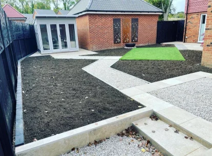 Ground preparation is a key step, involving excavation and compaction for a stable foundation. Material selection includes both slabs, natural stone and block paving, providing both durability and aesthetic appeal. Expert installation of slabs ensures a seamless and visually pleasing flow, and secure edging maintains the pathway’s shape over time, keeping your landscape both functional and elegant.